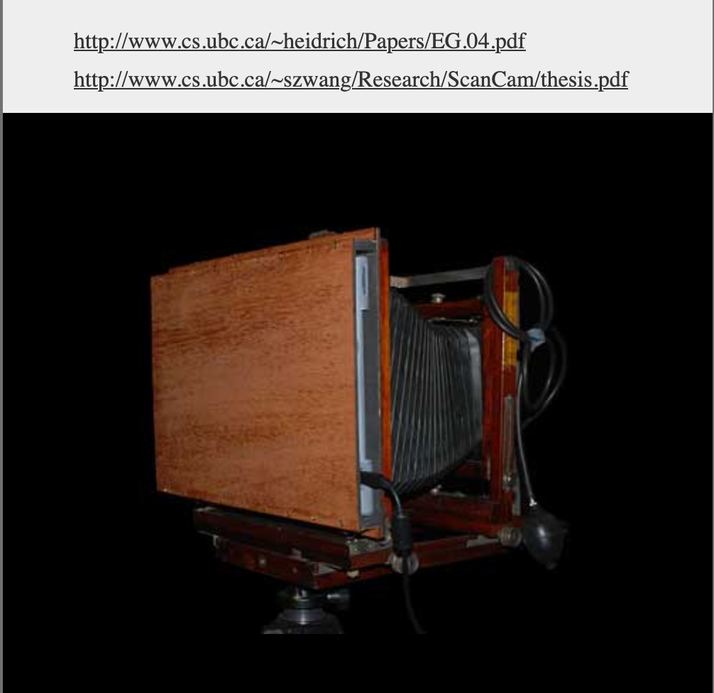 I have posted links to two papers, the first by Shuzhen Wang and Wolfgang Heidrich, The Design of an Inexpensive Very High Resolution Scan Camera System, and an earlier paper by Shuzhen Wang,An Inexpensive, High Resolution Scan Camera, that are very interesting along with some information on my latest camera conversion at: