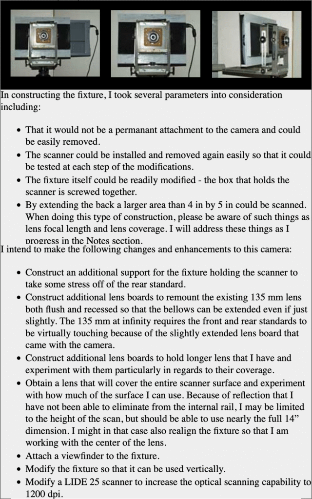 I hope you find this interesting and someone can indeed build an inexpensive large format scanner camera for all of us who can’t afford a professional unit.